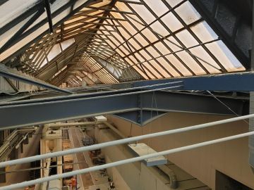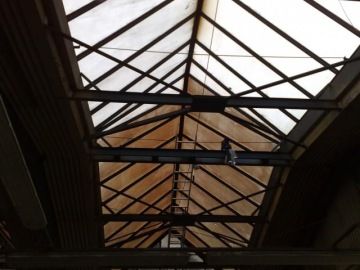 - Výškové odmašťování, odprašování konstrukcí hal, včetně stěn a světlíků